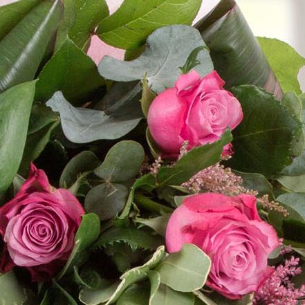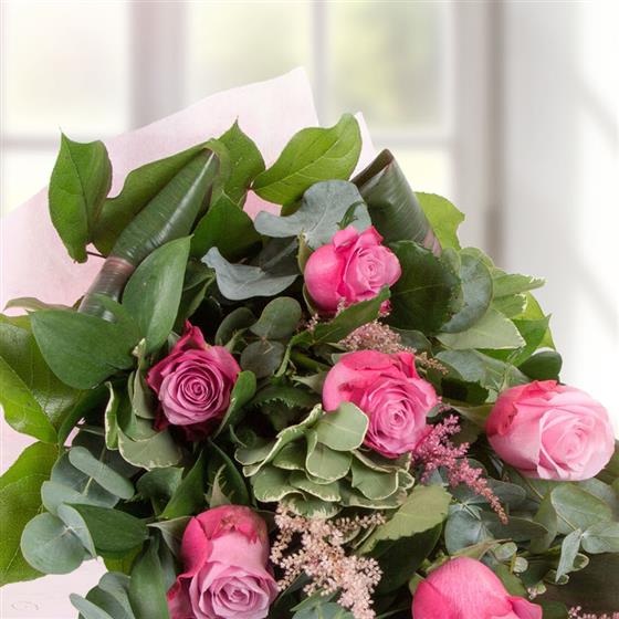 A simple tied bouquet of 6 roses in your choice of pink, red, white or yellow. Choose either 6 roses as pictured or 12.